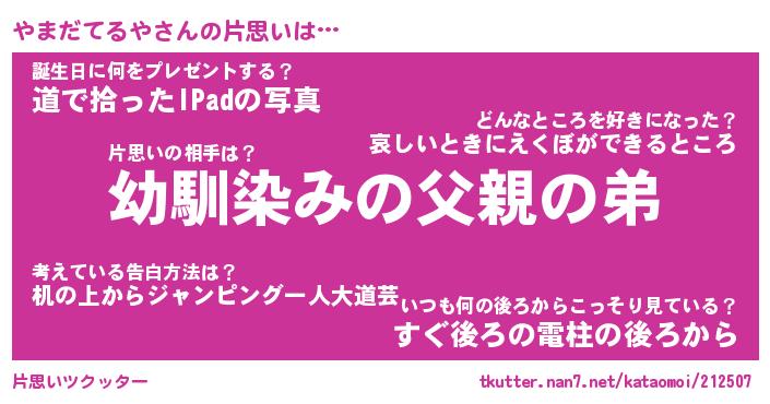 | 女子向けラノベタイトル風あだ名 | 『(仮)やまだてるやのやんごとなき事情』 |