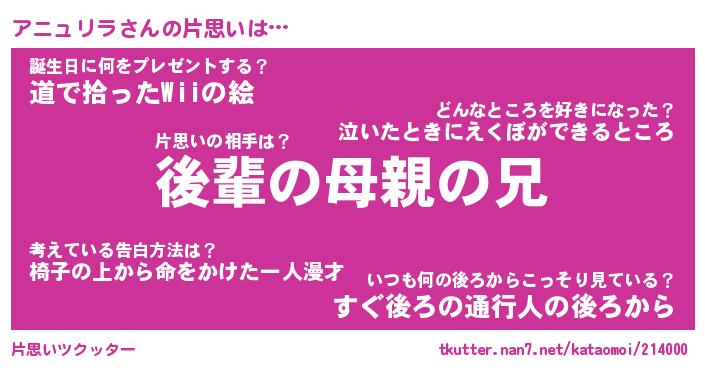 | ヘコむあだ名 | 『アニにー』『なまこ酢』『アニ太郎』 |