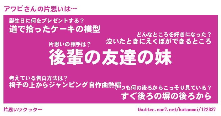 | ポケモン風あだ名 | 『アワチュウ』『アワビダネ』 |
