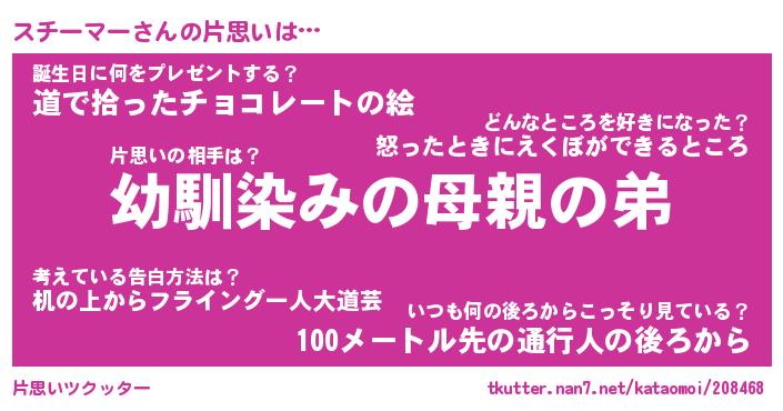 | 男性向けラノベタイトル風あだ名 | 『スチーマーの憂鬱』 |