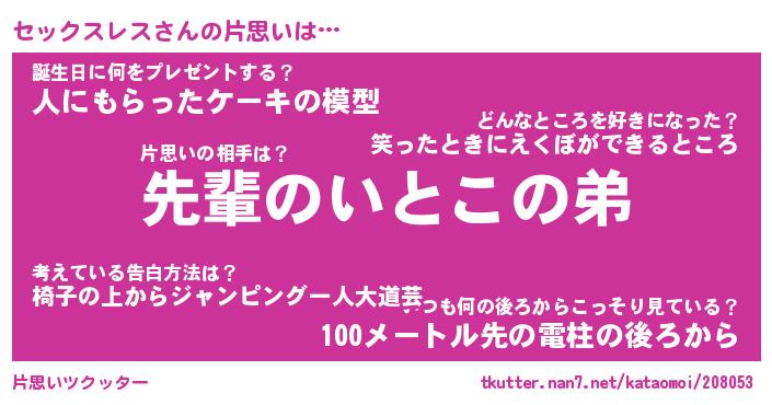 | 胡散臭い通販商品みたいなあだ名 | 『モテモテ間違いなし水晶球…その名も「セックスレス」』 |