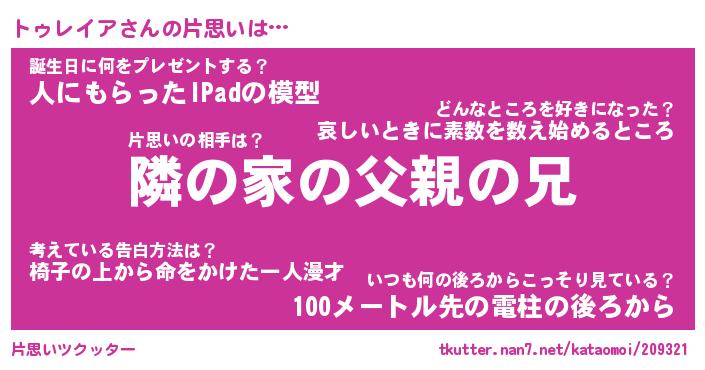 | 男性向けラノベタイトル風あだ名 | 『トゥレイアの憂鬱』 |