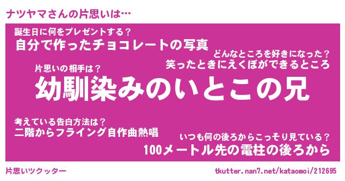 | ヘコむあだ名 | 『ナツもー』『酢こんぶ』『ナツお』 |