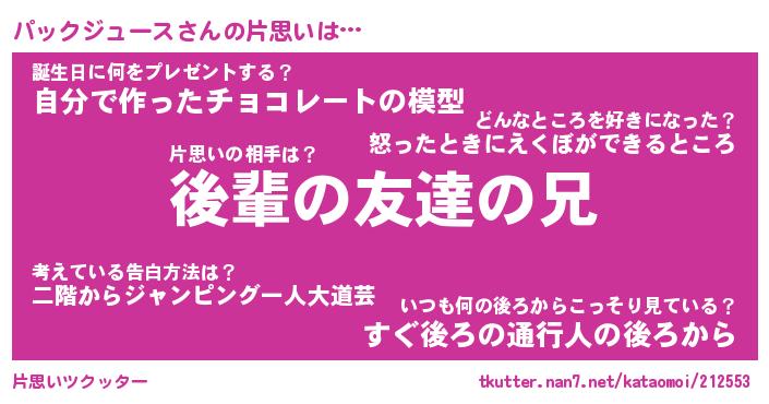 | 意味不明あだ名 | 『ペロリンパックジュース』 |