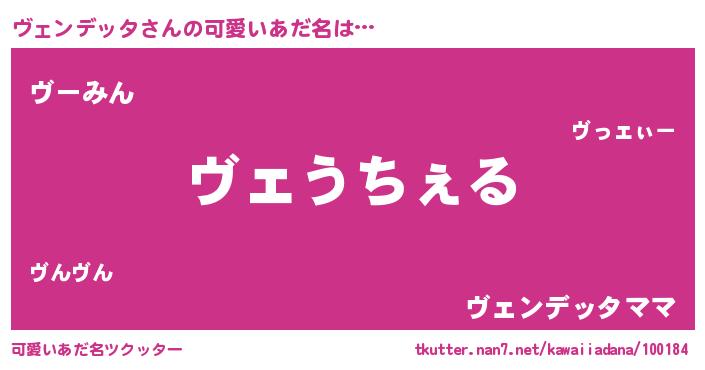 | 恥ずかしいあだ名 | 『ヴェンデッタデラックス』『ヴェちん』 |