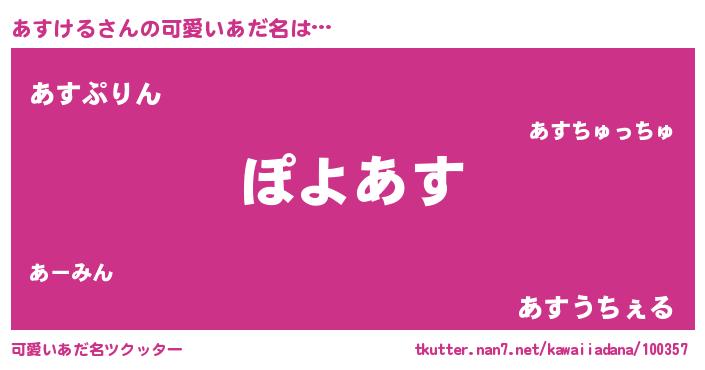 | 意味不明あだ名 | 『住所不定無職あすける(1歳)』 |
