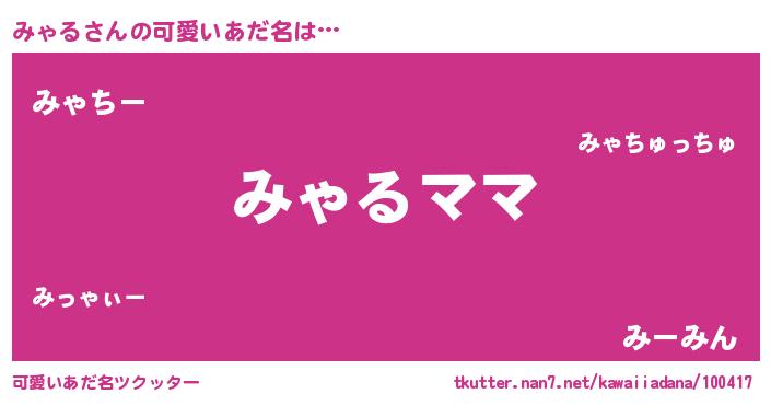 | 意味不明あだ名 | 『永久保存みゃる』『みゃるフォーエバー』 |