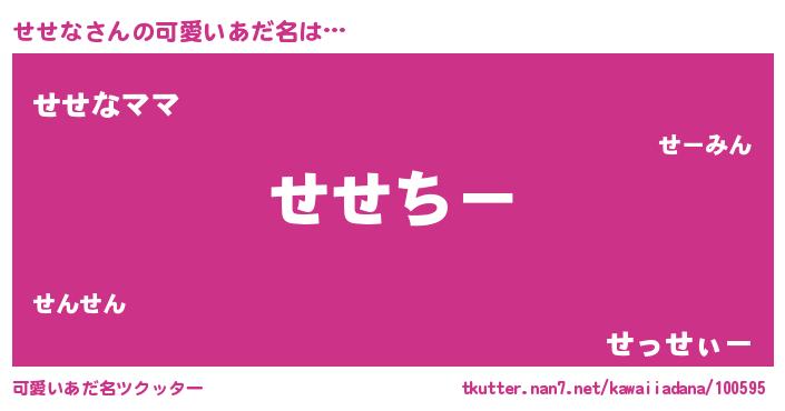 | ヒーロー風カッコイイあだ名 | 『ウルトラせせなマン』『ネオセセナ』 |