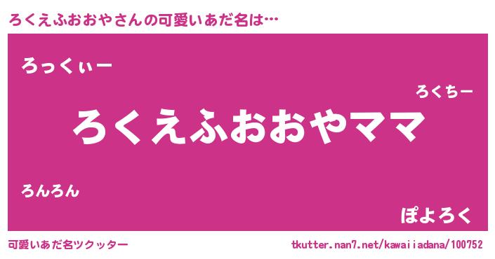 | 女子向けラノベタイトル風あだ名 | 『ろくえふおおやの契約王妃』 |