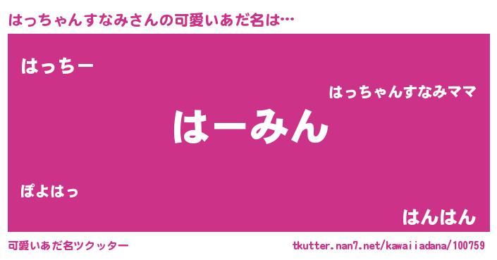 | 男性向けラノベタイトル風あだ名 | 『うちのはっちゃんすなみが世界を掌握している!』 |