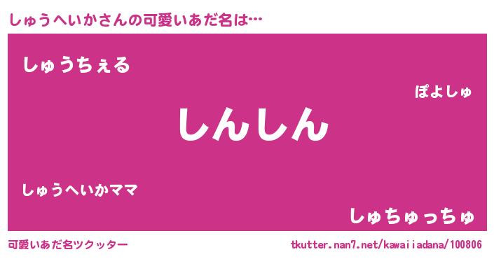 | 男性向けラノベタイトル風あだ名 | 『しゅうへいかに滅ぼされるだけの簡単なお仕事です』 |
