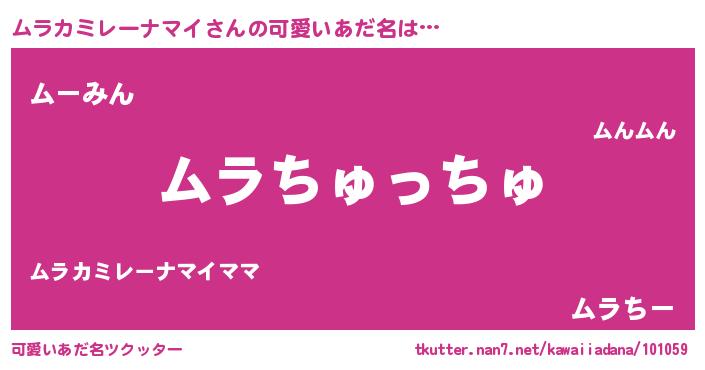 | 女子向けラノベタイトル風あだ名 | 『ムラカミレーナマイ恋絵巻』 |