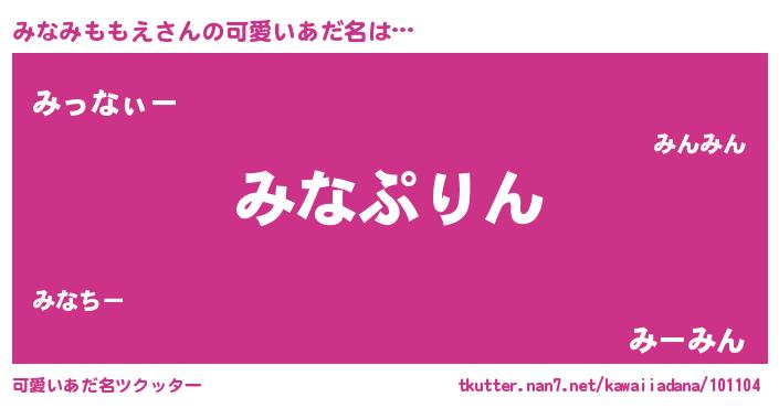 | ポケモン風あだ名 | 『ミナキング』『ヒミナミモモエ』 |