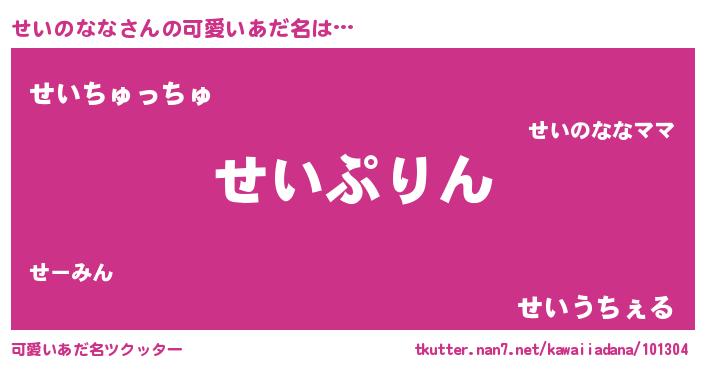 | 女子向けラノベタイトル風あだ名 | 『せいのななの玉の輿計画!』 |
