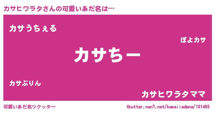 | 恥ずかしいあだ名 | 『カサっちょ』『カサヒワラタデラックス』 |