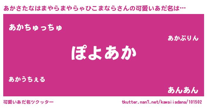 | ヘコむあだ名 | 『あかにゅー』『なまこ酢』『あかお』 |