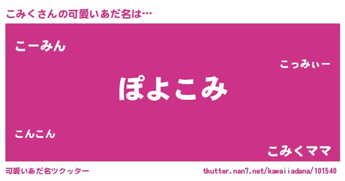 | ヘコむあだ名 | 『こみく(苦笑)』『こみっ子』 |