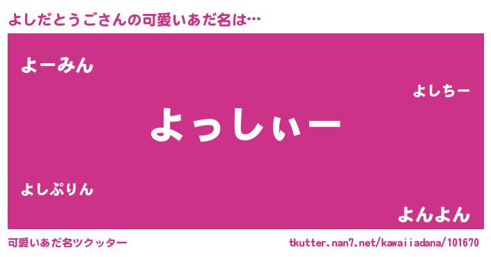 | ヘコむあだ名 | 『よしぷりん』『よしにゅー』 |