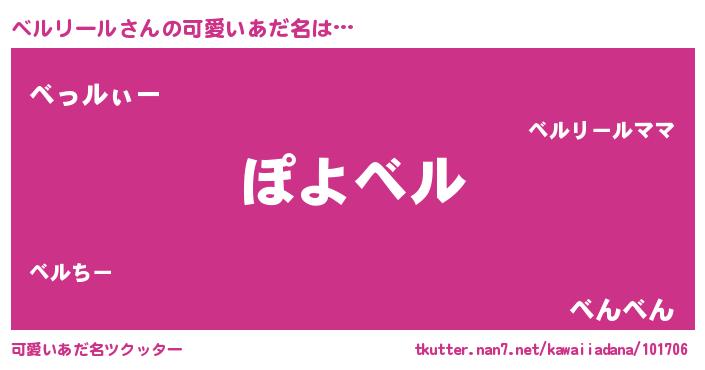 | 恥ずかしいあだ名 | 『ベルリンリン』『プリティーベルリール』 |