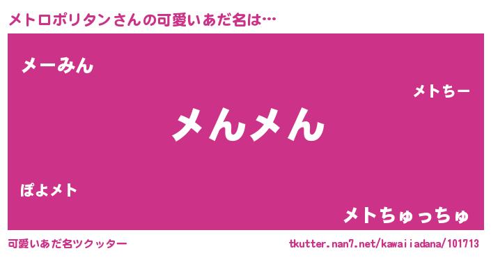 | ヘコむあだ名 | 『メトもー』『レバニラ』『メトっ子』 |