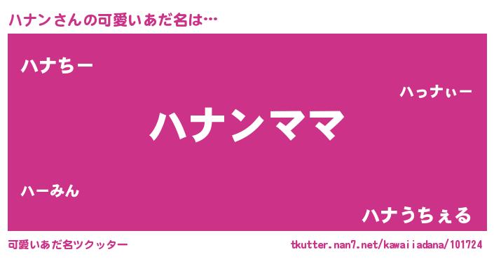 | ファンタジー風あだ名 | 『ハナディッシュ』『エターナルハナンー』 |