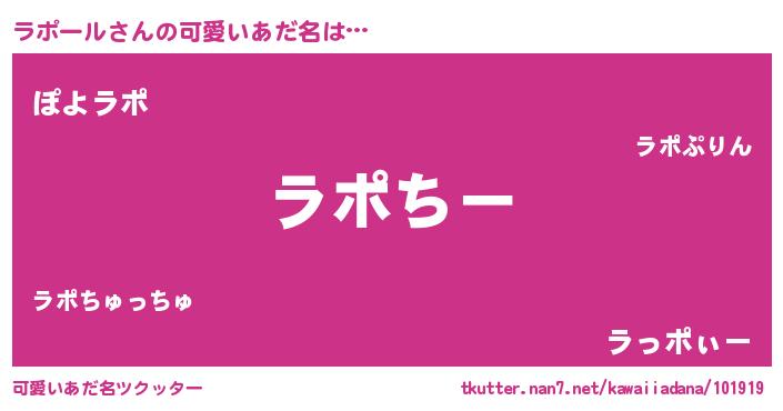 | ヘコむあだ名 | 『酢こんぶ』『ラポっぺ』 |
