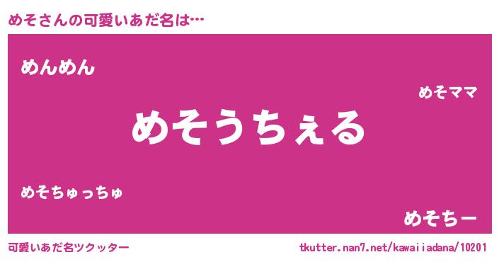 | ヘコむあだ名 | 『めそもー』『なまこ酢』『めそ(笑)』 |