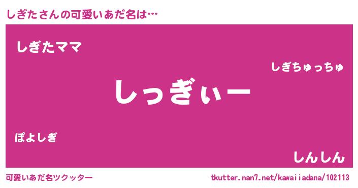 | ヘコむあだ名 | 『しぎぷりん』『しぎた(笑)』 |