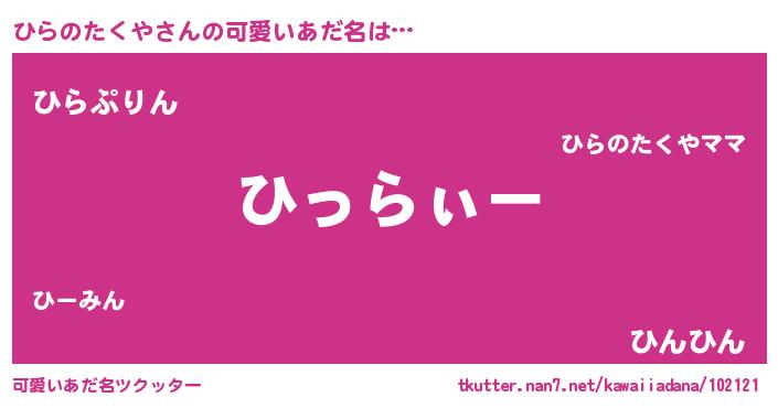 | ヒーロー風カッコイイあだ名 | 『幻影騎士ヒラ』『スーパーヒラノタクヤ』 |