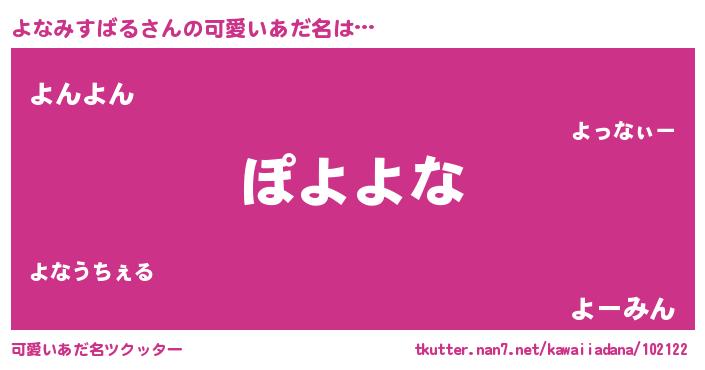 | 恥ずかしいあだ名 | 『プリティーよなみすばる』『よなちん』 |