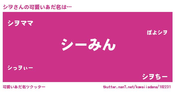 | ヘコむあだ名 | 『シヲ(爆)』『なまこ酢』『シヲっ子』 |