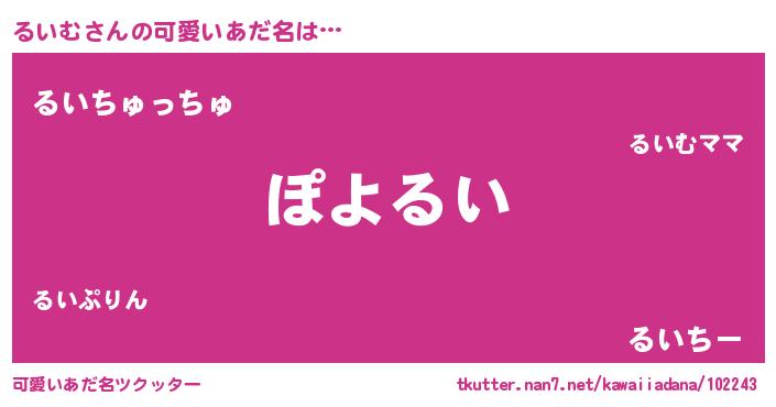 | ヘコむあだ名 | 『酢こんぶ』『るいむ(苦笑)』 |