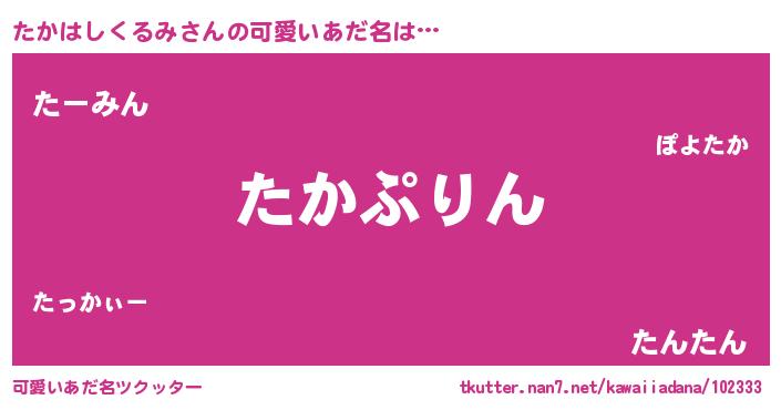 | ヒーロー風カッコイイあだ名 | 『スーパータカハシクルミ』 |