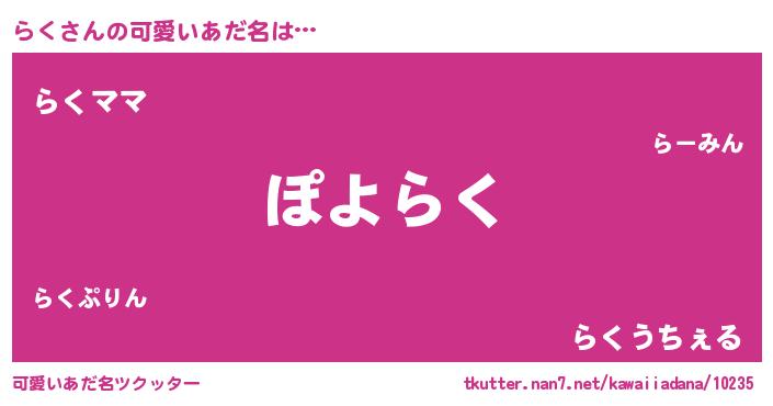 | 意味不明あだ名 | 『住所不定無職らく(84歳)』『永久保存らく』 |