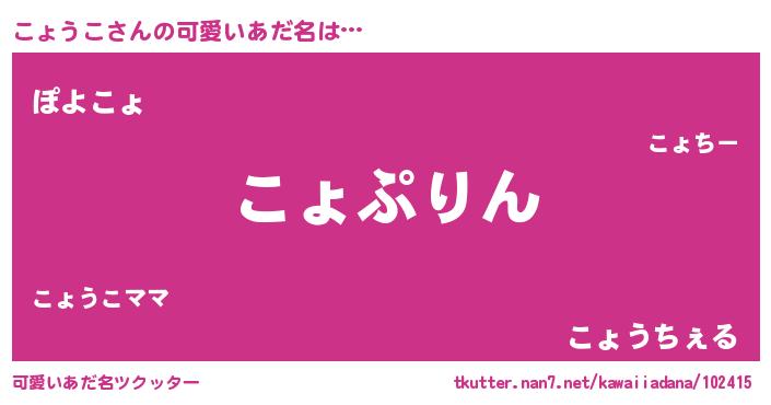 | 男性向けラノベタイトル風あだ名 | 『こょうこ~年齢イコール彼女いない歴の魔法使い~』 |