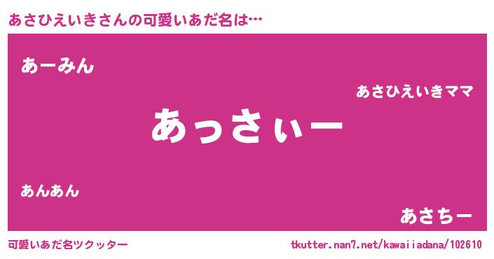 | 意味不明あだ名 | 『とにかく怪しいあさひえいき』 |