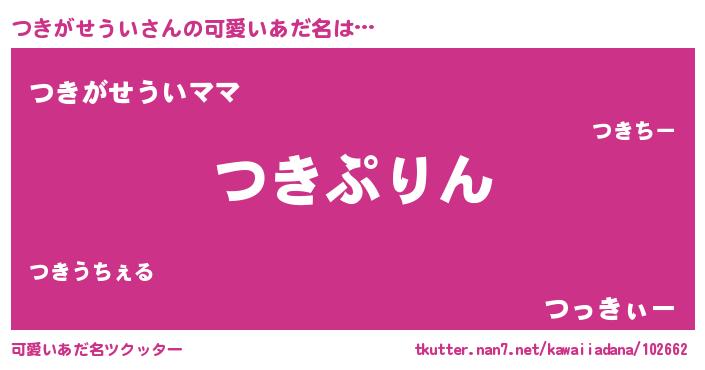| 男性向けラノベタイトル風あだ名 | 『つきがせうい~年齢イコール彼女いない歴の魔法使い~』 |