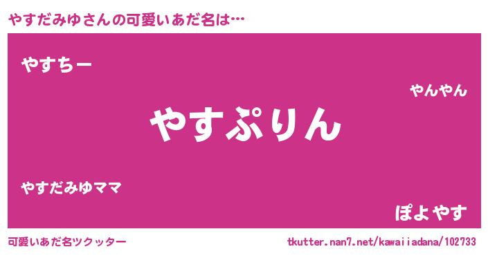 | 男性向けラノベタイトル風あだ名 | 『やすだみゆ~年齢イコール彼女いない歴の魔法使い~』 |