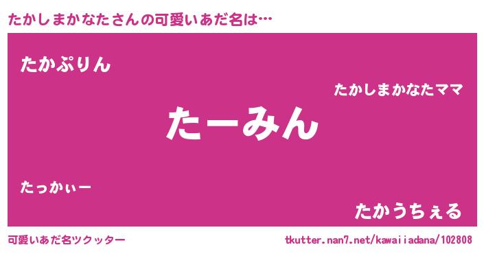 | ヘコむあだ名 | 『たかしまかなた(笑)』『たかを』 |