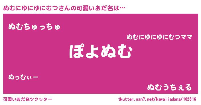 | 男性向けラノベタイトル風あだ名 | 『ぬむにゆにゆにむつに滅ぼされるだけの簡単なお仕事です』 |