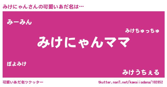 | 恥ずかしいあだ名 | 『みけちん』『ミケニャンデラックス』 |