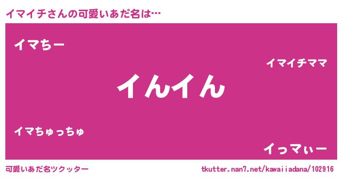 | ポケモン風あだ名 | 『イマチュウ』『イマイダネ』 |