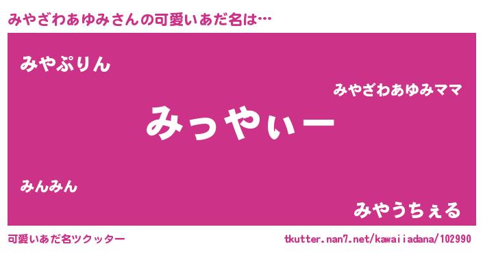 | ヘコむあだ名 | 『みやを』『みやざわあゆみ(爆)』 |