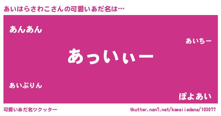 | 欧米人風あだ名 | 『ウサインあいはらさわこ』 |
