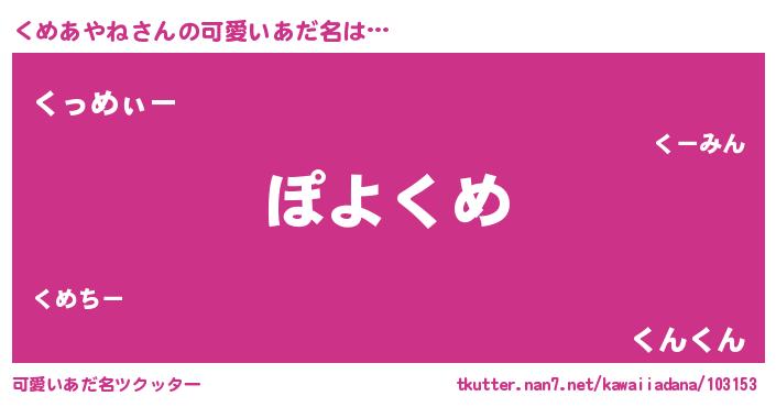 | ヘコむあだ名 | 『くめっ子』『くめっふぃ~』 |