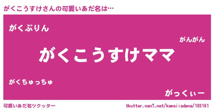 | ヘコむあだ名 | 『がくこうすけ(笑)』『がくぷりん』 |