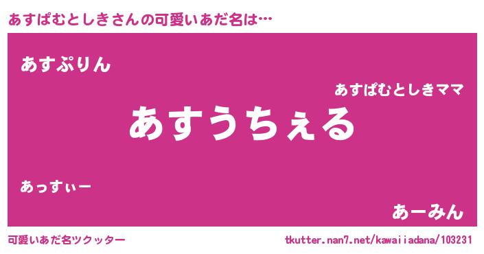 | ヘコむあだ名 | 『あすぱむとしき(笑)』『あすっぺ』 |