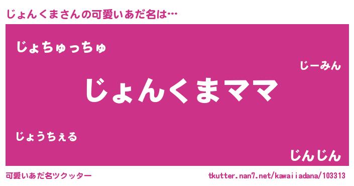 | 意味不明あだ名 | 『永久保存じょんくま』『自称じょんくま』 |