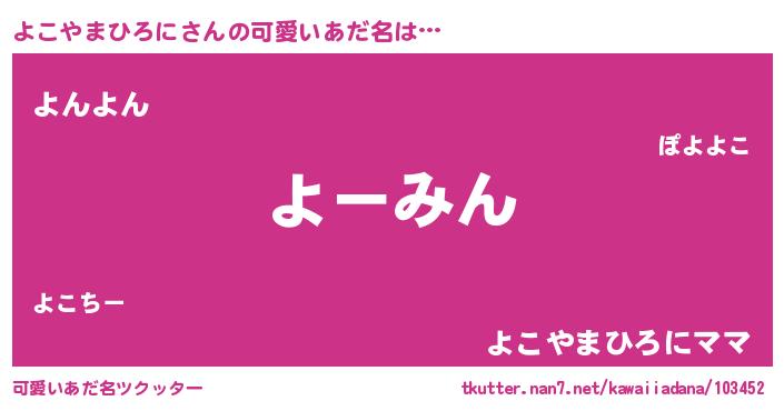 | ヘコむあだ名 | 『よこっふぃ~』『よこやまひろに(震え声)』 |