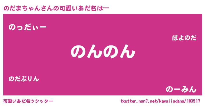 | 欧米人風あだ名 | 『アンジェラ・のだまちゃん』 |